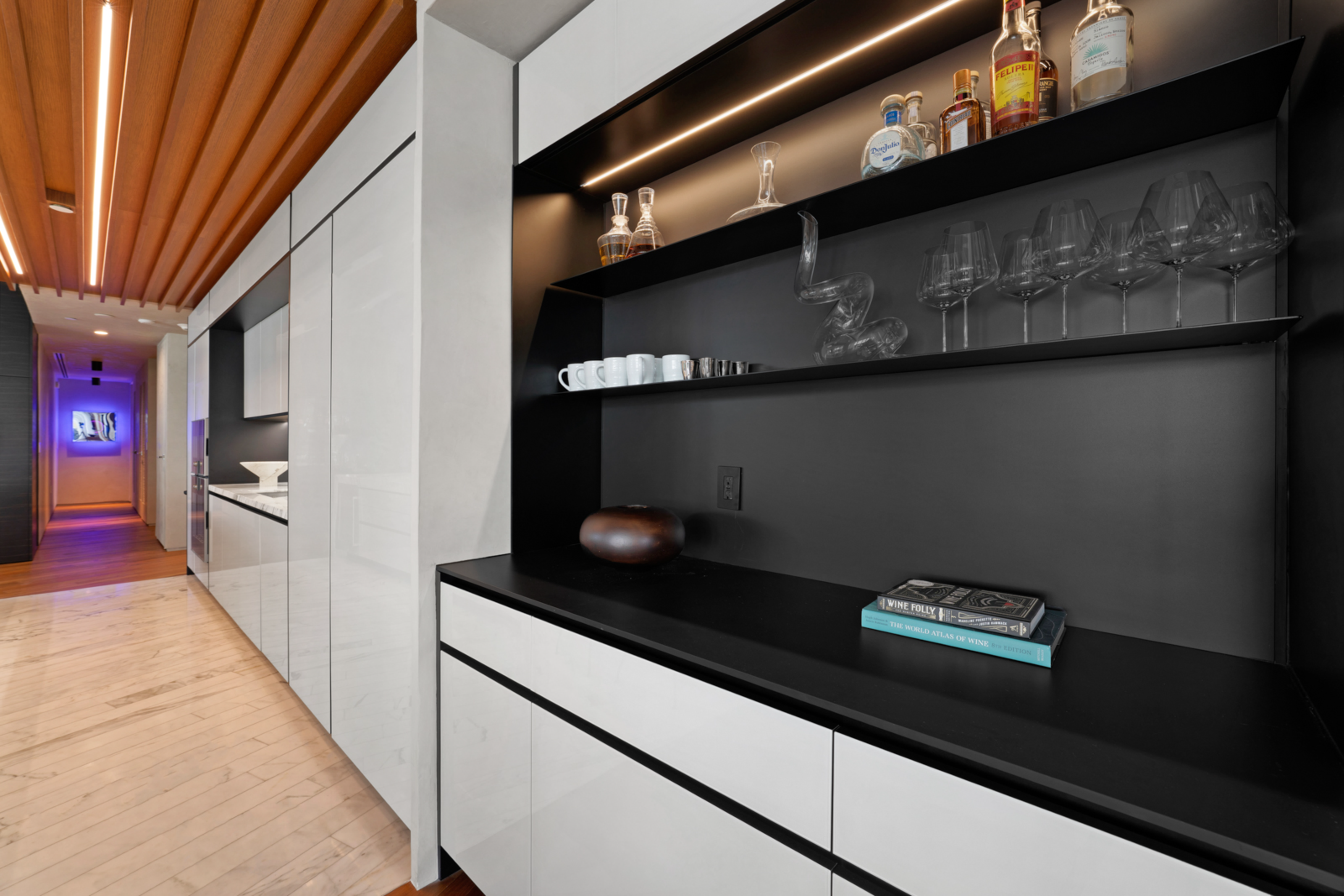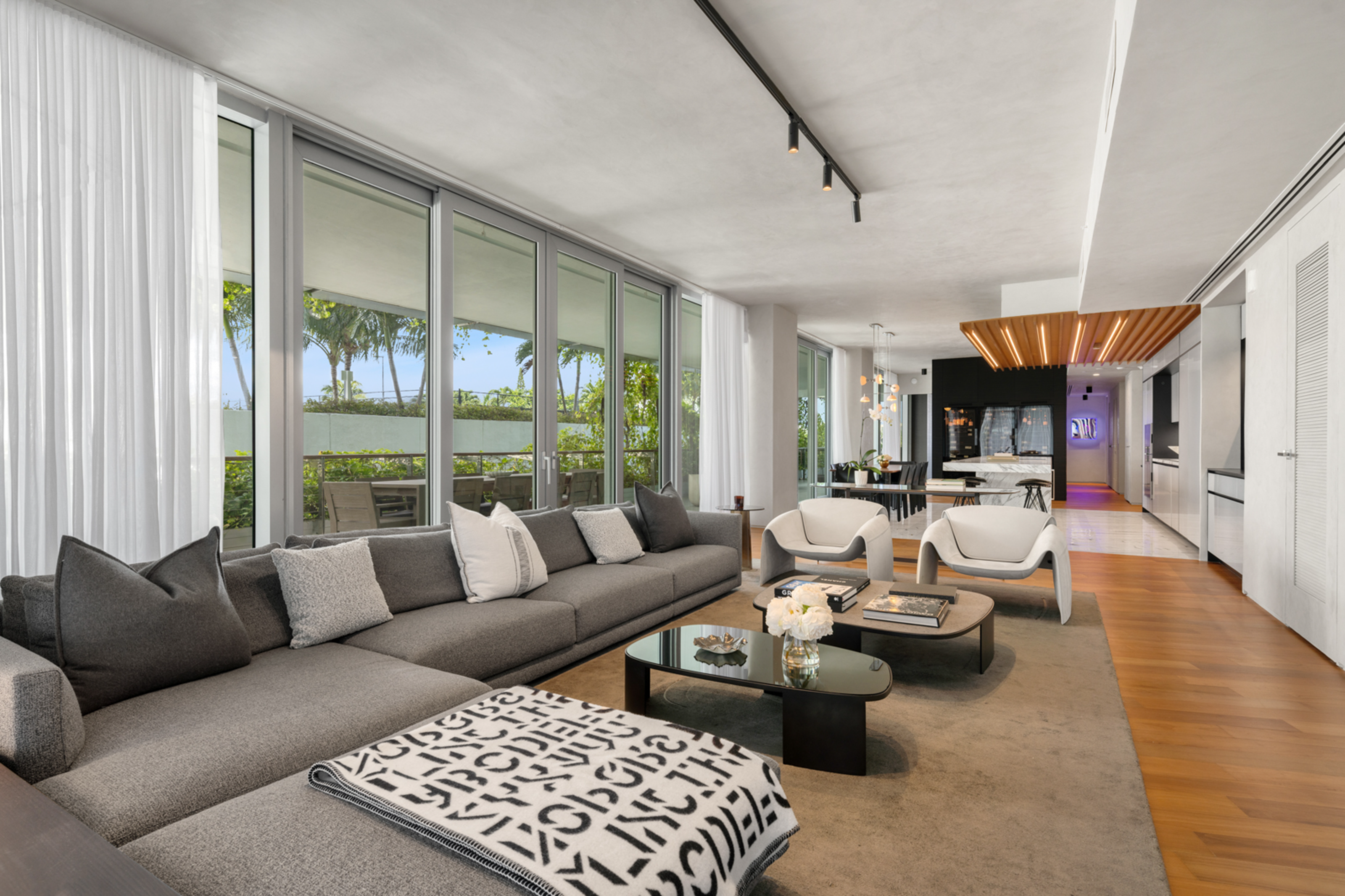 Step Inside With Me! A statement in contemporary design, this designer flow-through corner residence showcases water views and an ideal floorplan. Past the private foyer, curated interiors reveal a grand salon with 10' ceilings, wood floors, custom millwork, bespoke bar, wine wall and wood paneling enhanced by Lutron lighting and automated shades. The chef’s kitchen pairs Calacatta marble with Gaggenau appliances beneath a teak canopy. The primary suite features a Poliform dressing room and spa bath with soaking tub and rain shower. Telescopic glass walls open to a 1,795 SF wraparound terrace with hanging gardens and East/West exposures. This Jean Nouvel 59-residence enclave offers tranquil lagoons, fitness studio, 24hr security, valet, 100’ pool - all just minutes from Sunset Harbour.